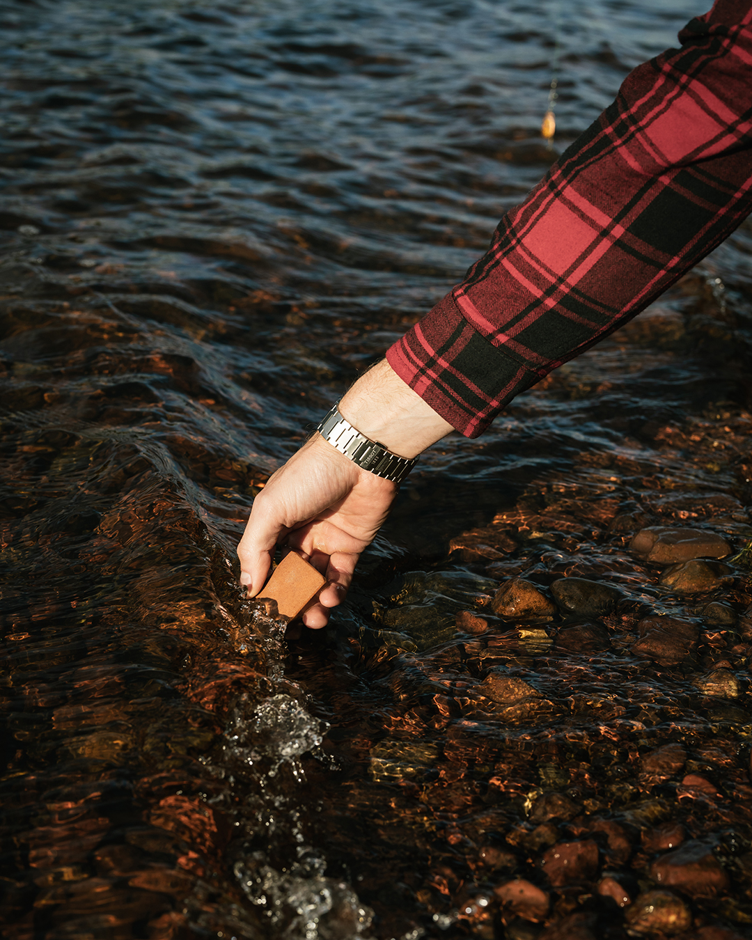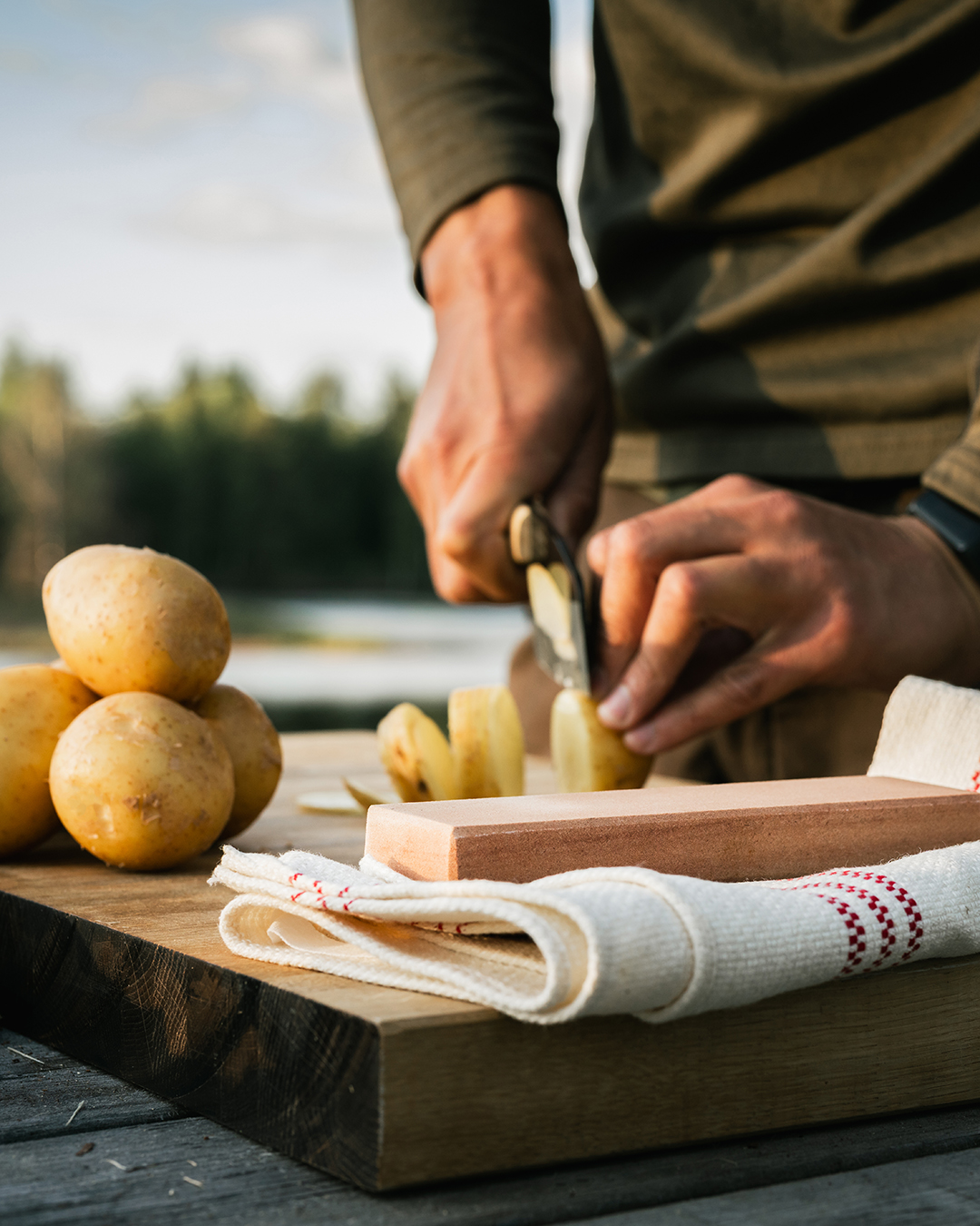 Detta är ett 100% svenskt och hållbart naturmaterial, tillverkat för att hålla länge. Brynet är det perfekta redskapet för att hålla dina knivar vassa, oavsett om du är på jakt, fisketur eller andra äventyr.