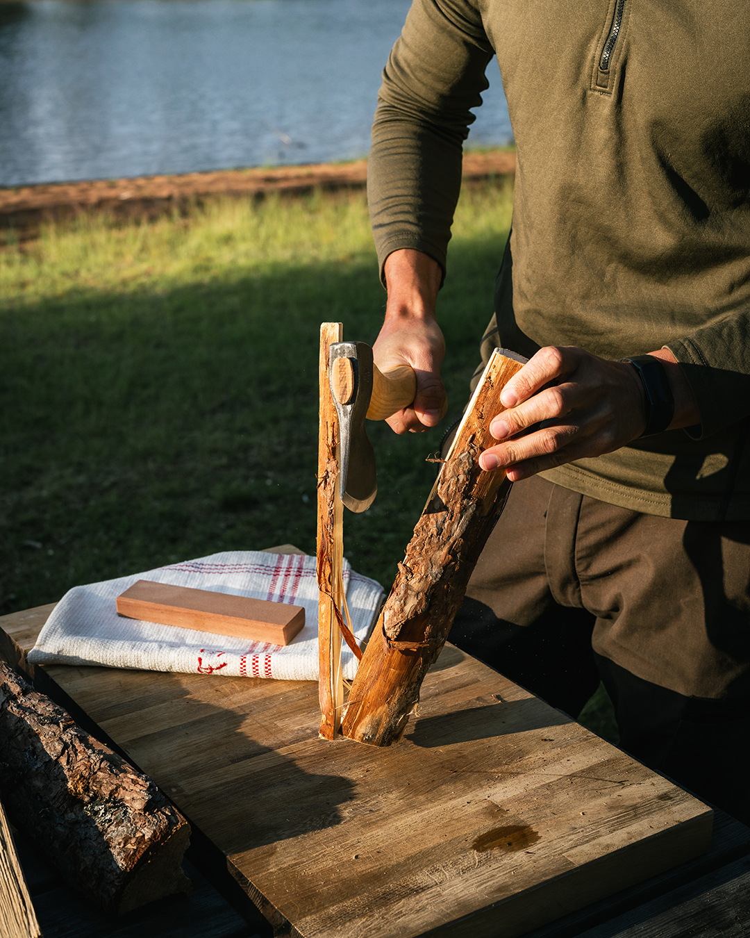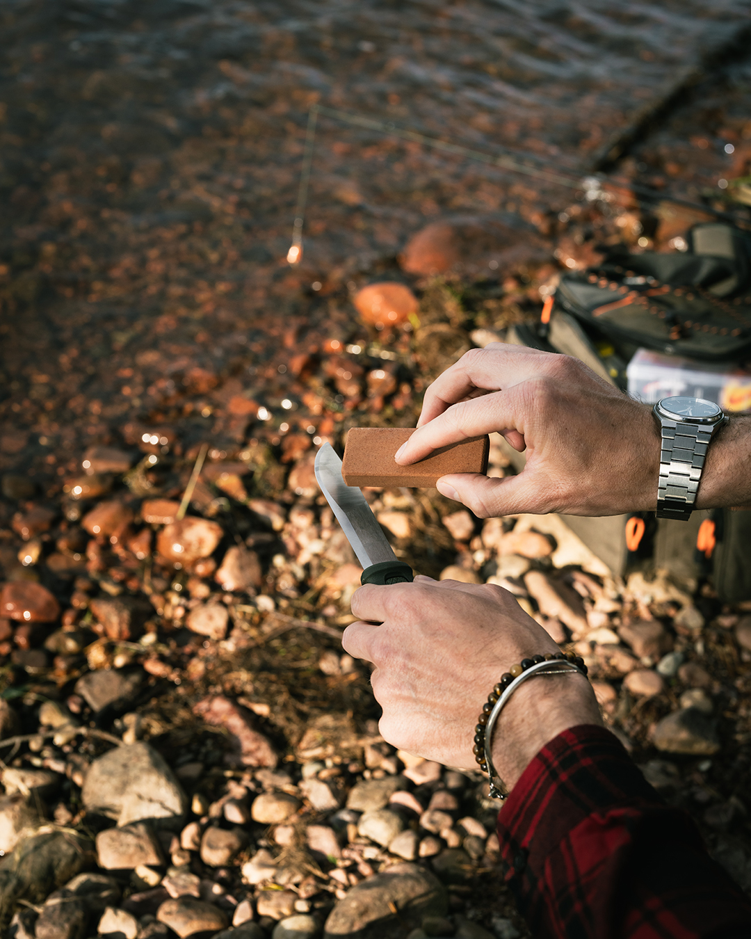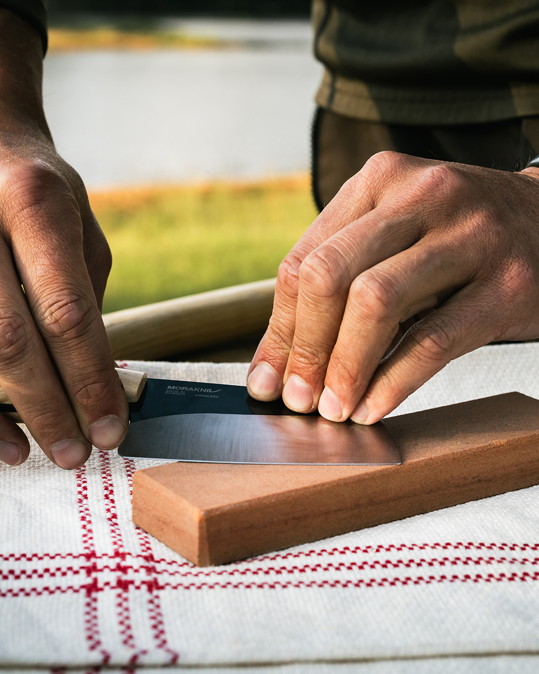 Använd brynet tillsammans med vatten eller slipoja för bästa resultat. Vi erbjuder två praktiska storlekar: det stora brynet för omfattande vässning och det mindre outdoorbrynet som är perfekt för mindre verktyg eller när du är på språng.